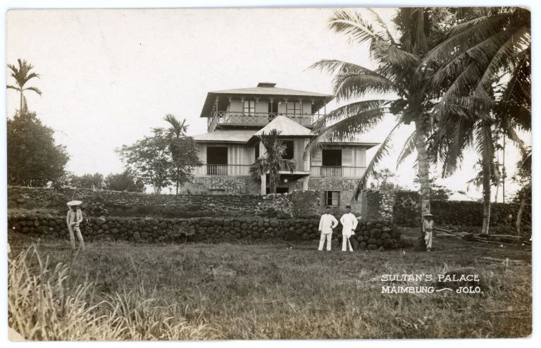 Three-story home of the Sultan of Sulu in Jolo with gardens and guards. The Royal House of Sulu is a Muslim royal house of the Sulu Archipelago in the Philippines.