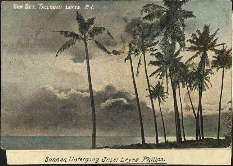 Subject: Group of tall palms silhouetted against evening sky out to sea in Tacloban, Leyte. Many Philippine islands claim the best sunsets in the world.