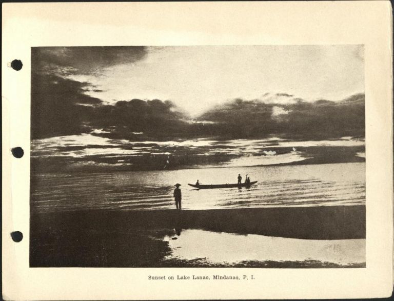 Subject: Sunset on Lake Lanao with a man on shore and a boat nearby. Image has also been attributed to Manila Bay (see ROJR-001933 and ROJR-000238). Givens was the post photographer at th