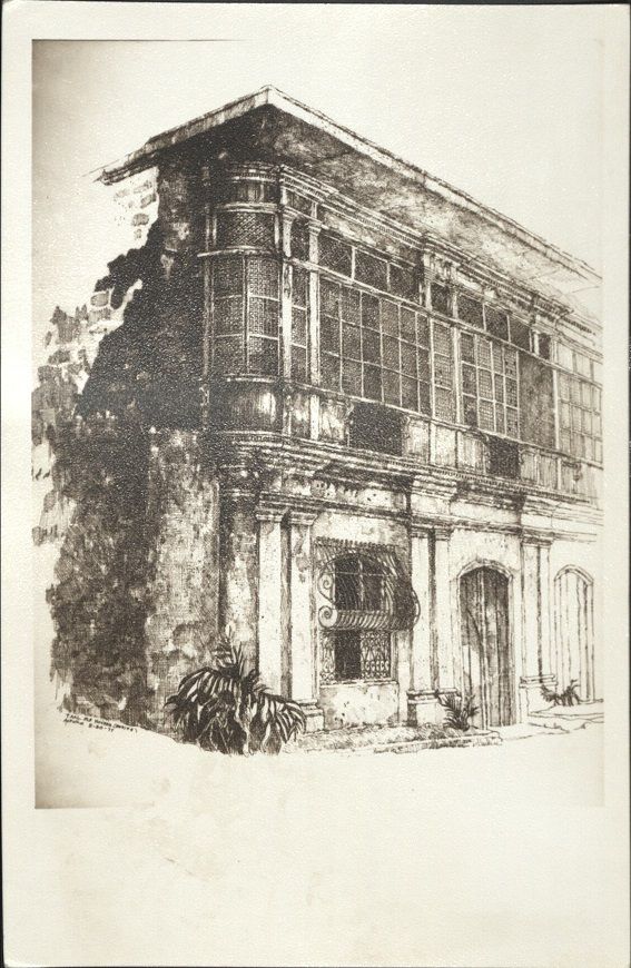 Subject: Street scene of large two-story traditional old house in Taal, Batangas Province. Although not specified, these prints are similar to the postcards prod