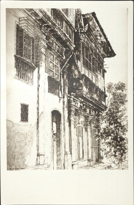 Subject: Street scene of large two-story traditional old house in Taal, Batangas Province. Although not specified, these prints are similar to the postcards prod