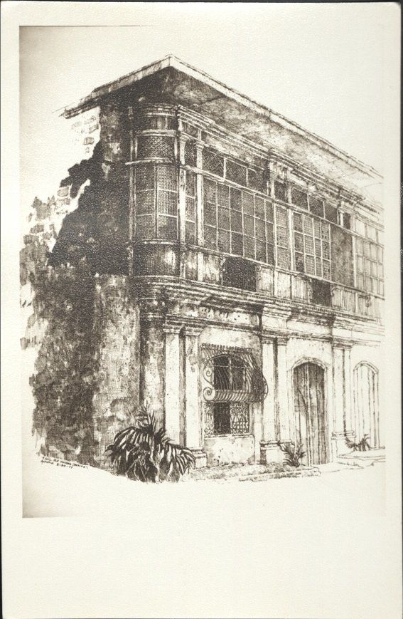 Subject: Street scene of large two-story traditional old house in Taal, Batangas Province. Although not specified, these prints are similar to the postcards prod