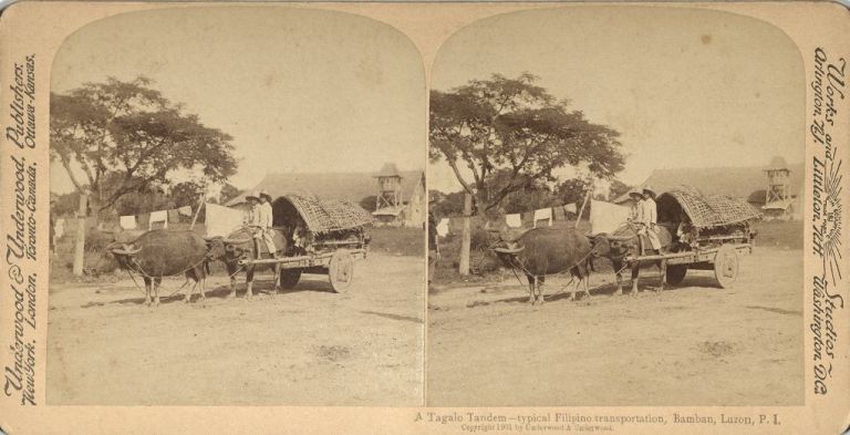 A Tagalo Tandem - typical Filipino transportation, Bamban, Luzon, P. I.