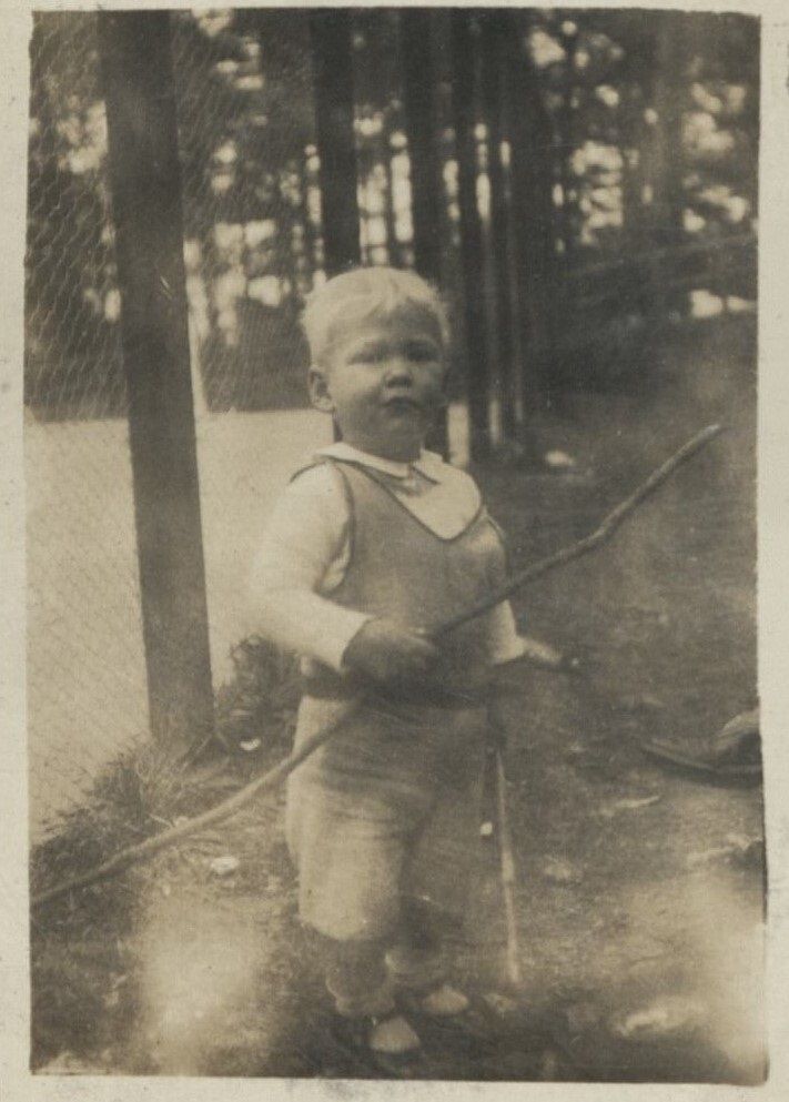 Subject: A young expatriate boy stands holding a stick next to tennis courts in Baguio. There is no mention of the Scudder family in Halsema, James (1988), "Bishop Brent's Baguio School."