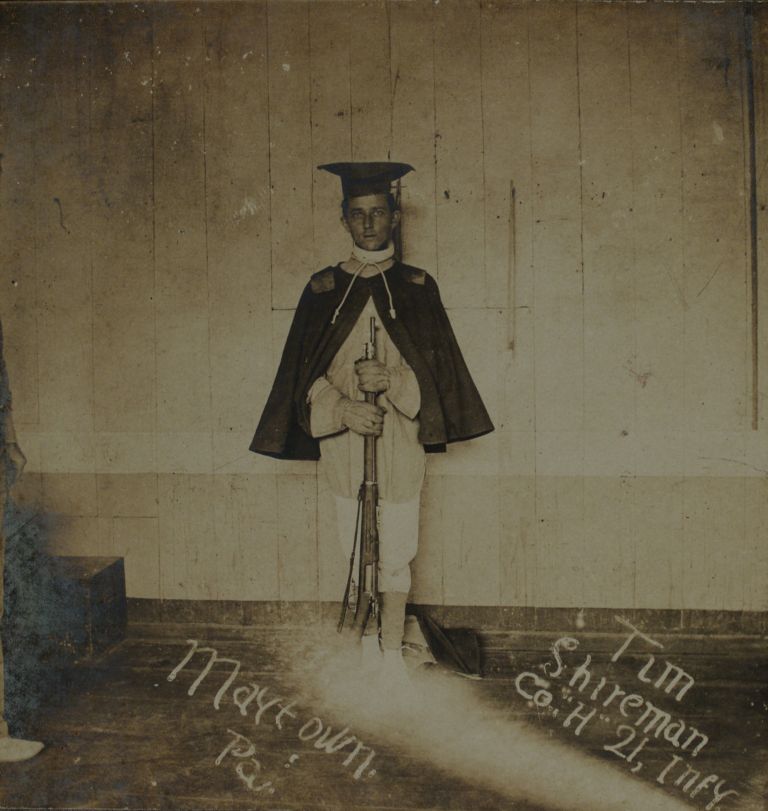 Tim Shireman, Co. [Company] "H" 21st Infy [Infantry], Maytown, Pa. [Pennsylvania].