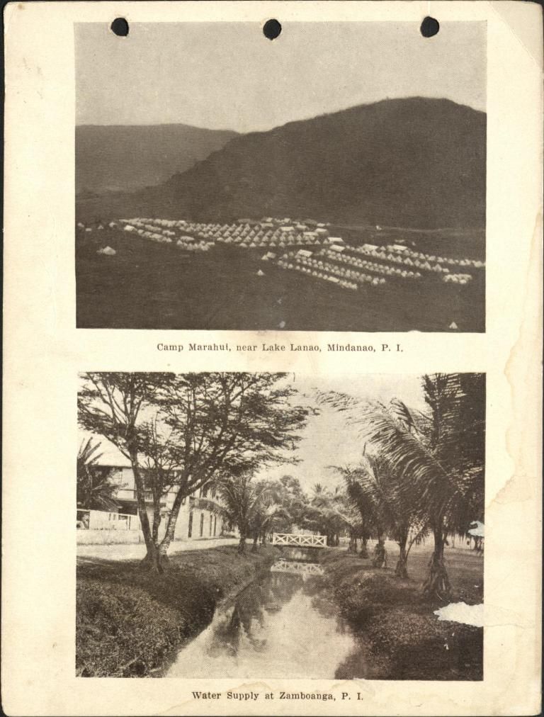 Subject: Top: View of Camp Marahui [Marawi], later named Camp Keithley, on the shores of Lake Lanao. Bottom: Likely the Artilicias Canal in Zamboanga City. Givens was the post photographer