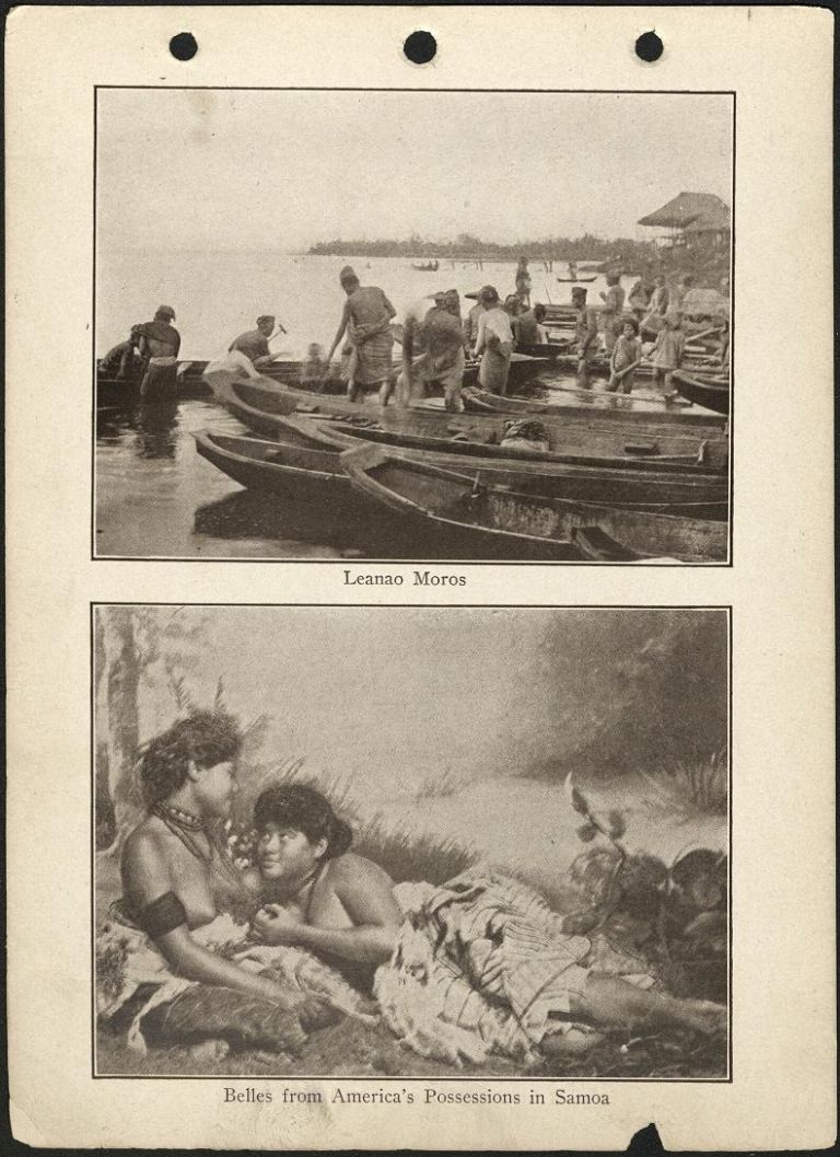 (Top) Leanao [Lake Lanao] Moros. / (Bottom) Belles from America's possessions in Samoa.