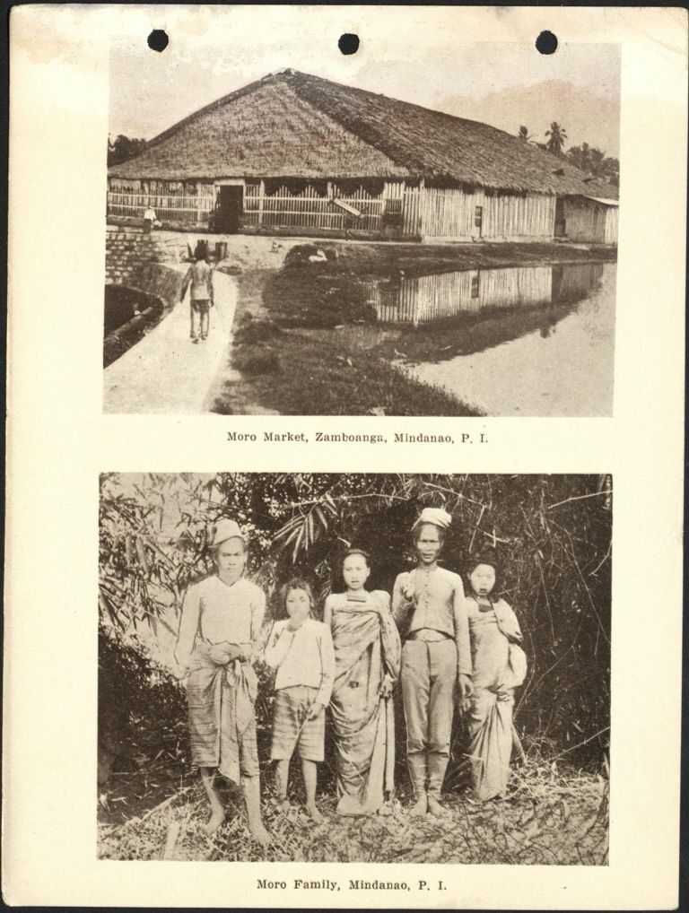 Subject: (Top) A large covered market building in Zamboanga. (Bottom) Muslim family poses in front of jungle vegetation. Givens was the post photographer at the Presidio of San Francisco