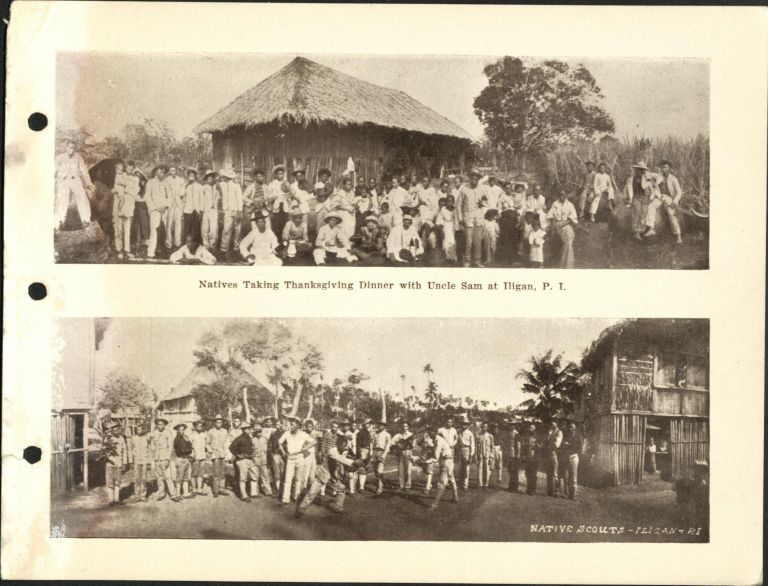 (Top) Natives taking Thanksgiving dinner with Uncle Sam at Iligan, P. I. (Bottom) Native scouts - Iligan - P. I.