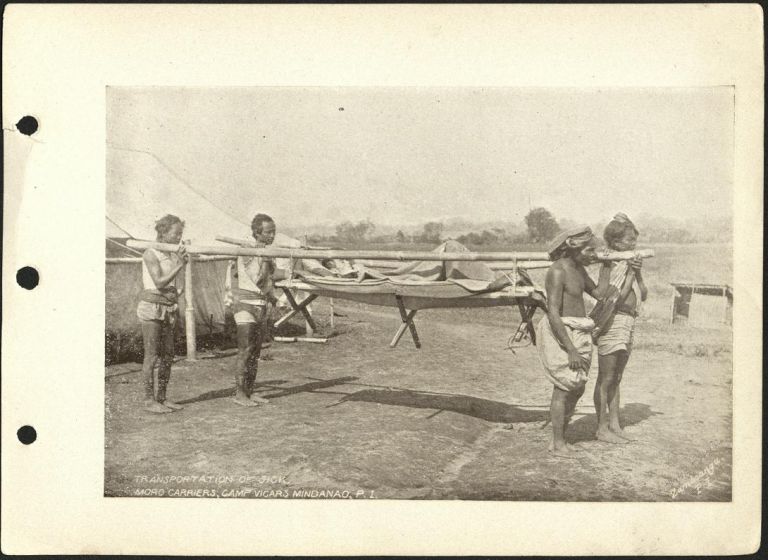 Transportation of sick. Moro carriers, Camp Vicars Mindanao, P. I.