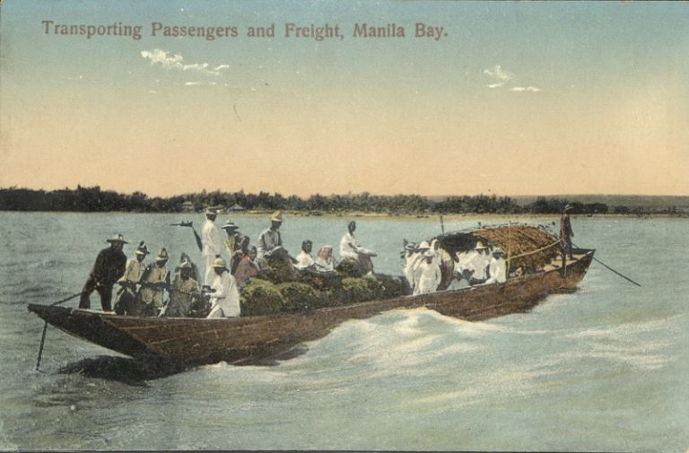 Subject: Casco loaded with cargo and passengers on Manila Bay.