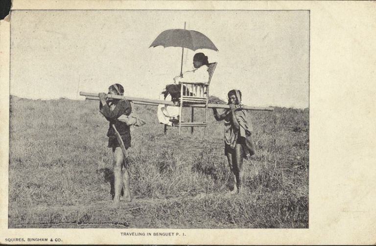 Subject: Woman in chair carried by two Igorot men in Benguet Province. Same image used in OFI-003048.