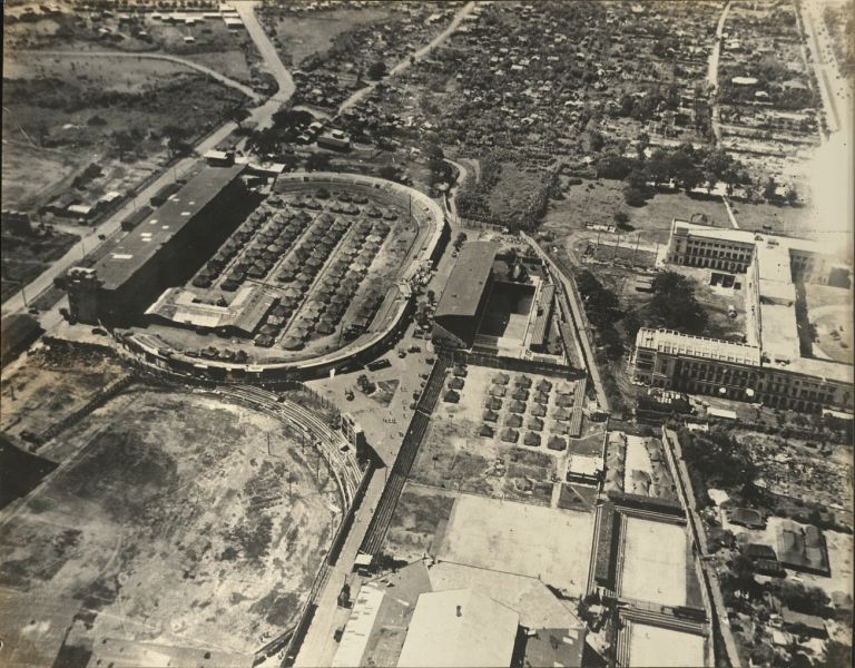 [Untitled - Aerial view of Rizal Memorial Sports Complex and De la Salle University, Malate - war-damaged].