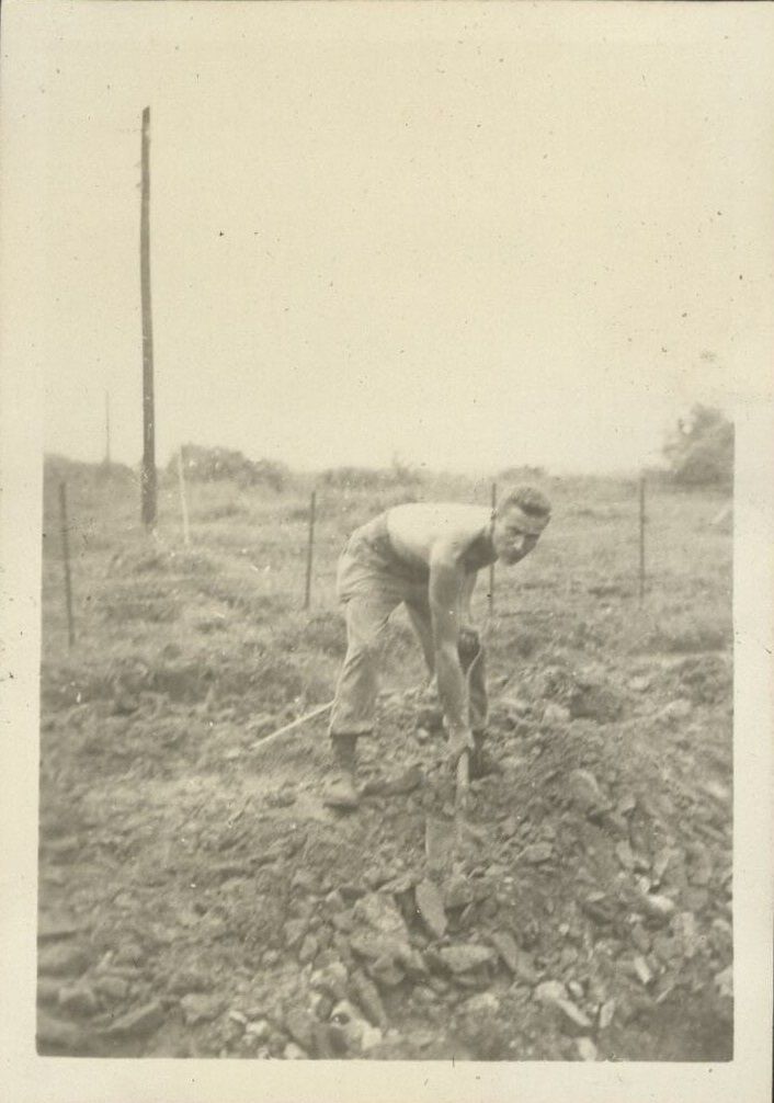 Subject: A U.S. soldier uses a shovel to dig something in the Philippines. It induces sweating just looking at him.