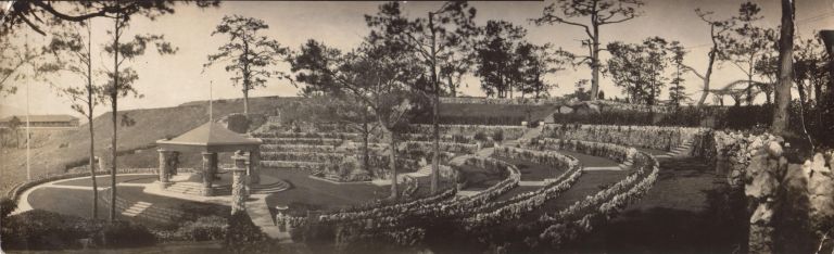 Subject: Gazebo and terraced gardens of the Bell Amphitheater, built 1913, on the grounds of Camp John Hay in Baguio. None of the trees which originally stood were removed. Unusual view: most images