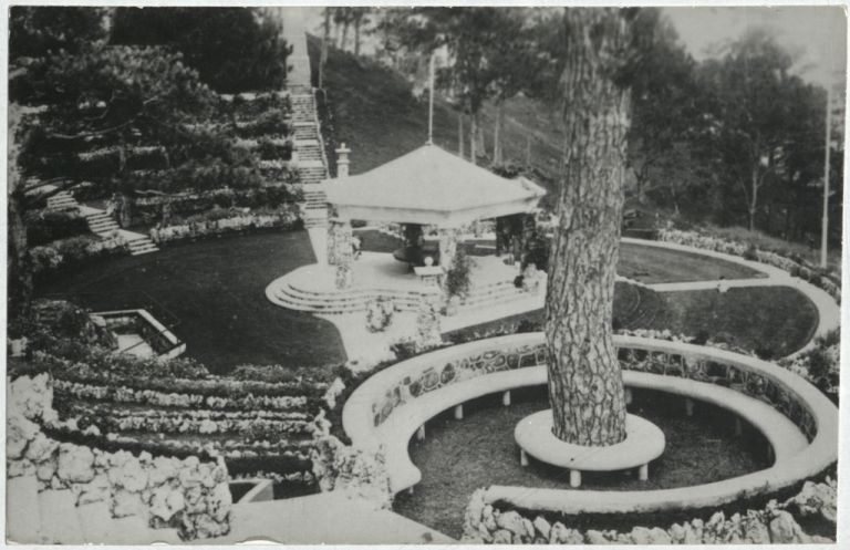 Gazebo and terraced gardens of the Bell Amphitheater, built 1913, on the grounds of Camp John Hay in Baguio. None of the trees which originally stood were removed.