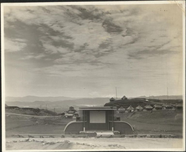 [Untitled - Amphitheater, stage & movie screen at U.S. Army camp, Luzon, 1945].