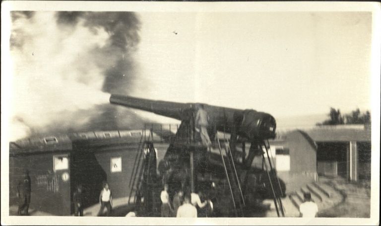Subject: Coastal artillery firing at either Fort Mills, Corregidor, or Fort Wint, Grande Island, but the caliber would suggest Corregidor. A disappearing gun is an obsolete type of artillery which ena