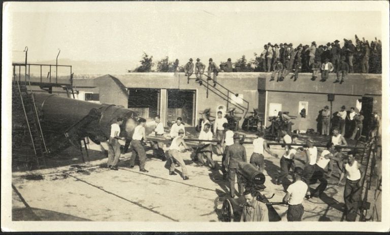 Subject: Coastal artillery reloading at either Fort Mills, Corregidor, or Fort Wint, Grande Island, but the caliber would suggest Corregidor. A disappearing gun is an obsolete type of artillery which