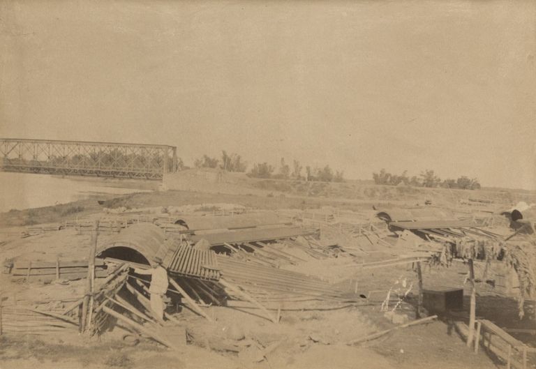 [Untitled - Bomb-proof trenches constructed of railroad iron and Rio Grande River at Calumpit, Philippine Islands].