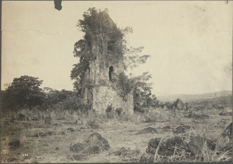 [Untitled - Cagsawa Church ruins at Daraga, Albay, buried in lava].
