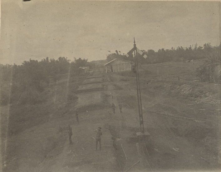 [Untitled - Car shops of the Manila & Dagupan Railroad, captured in the Battle of Caloocan].