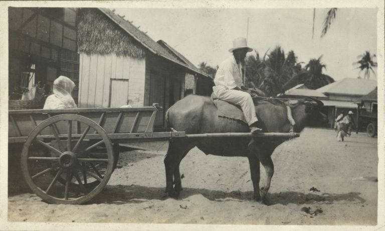 [Untitled - Carabao and cart in town].