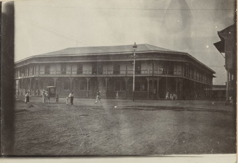 Subject: Commercial building on a busy street in Manila. Possibly this is the same building pictured years later in ROJR-000305 (as the La Extremena building at corner Escolta and Calle N