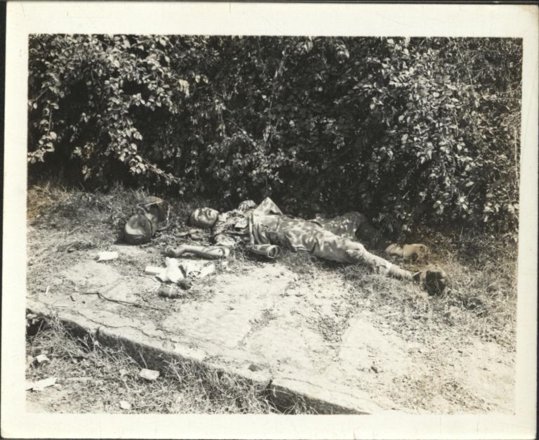 [Untitled - Destruction and dead Japanese soldier in Manila during liberation, February 1945].