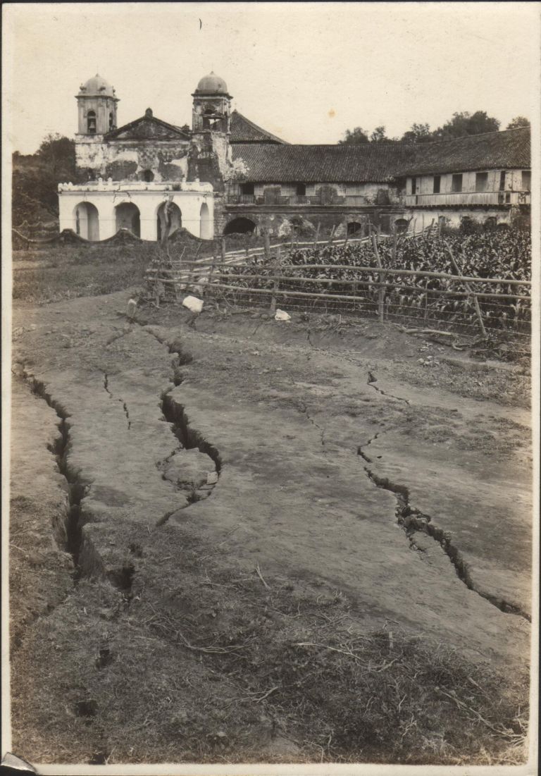 Subject: Fault lines from an earthquake run across the road in front of the Caysasay Shrine in Taal. The Archdiocesan Shrine of Our Lady of Caysasay is a coral-hewn chapel in Barrio Caysasay in Taal,