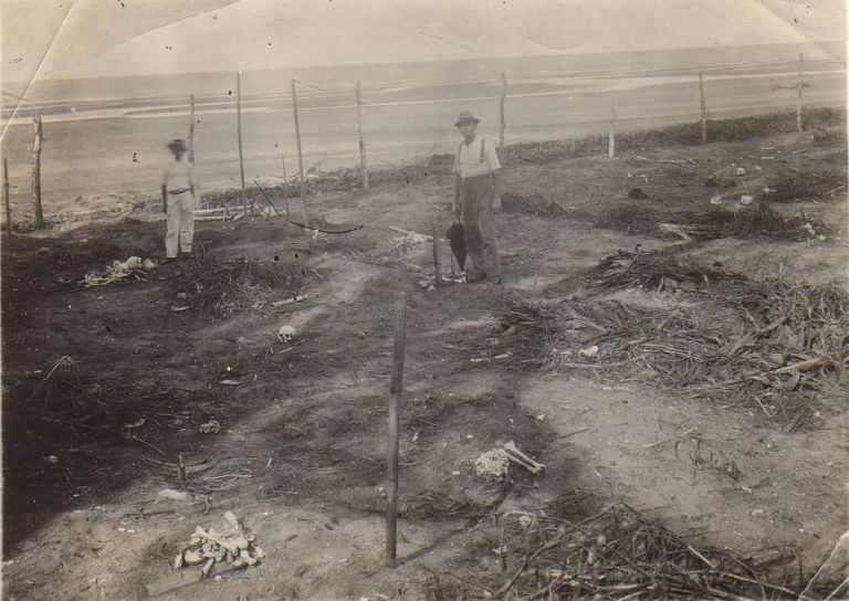 Subject: Too bad this is lacking a caption to fill in the "where" and "why." Piles of human bones and skulls indicate this was a seaside cemetery or burial ground, but it's unclear if this is an arche