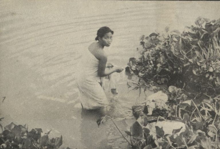 [Untitled - Filipina bathing and doing laundry in a river].
