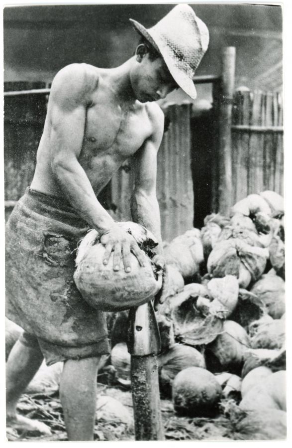 [Untitled - Filipino husking coconuts].
