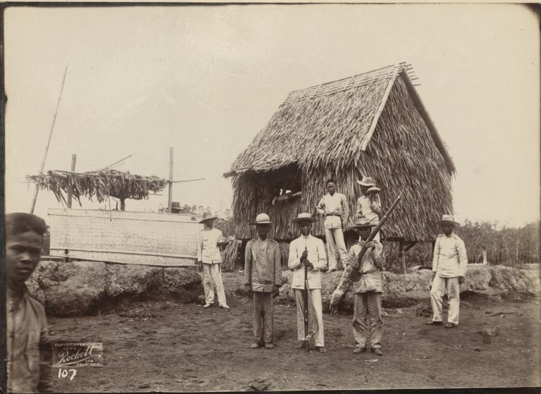 [Untitled - Filipino officers by hut during Philippine Insurrection].