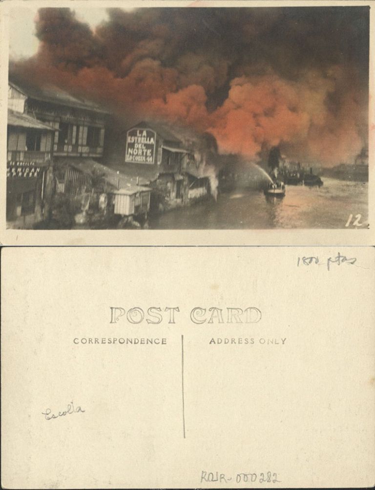 Subject: Fireboat on Pasig River pumping water on fire in commercial buildings on Escolta.