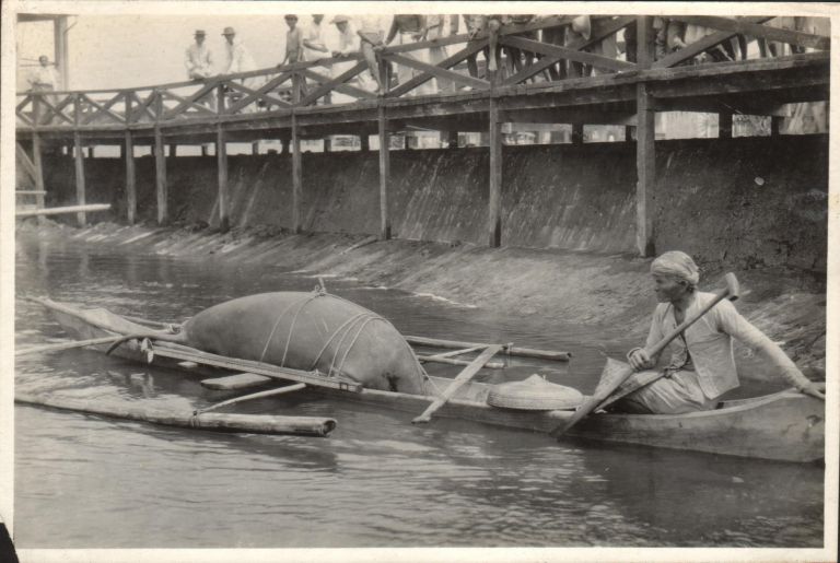 Subject: From the side, the snout looks like a shark, but it appears awfully bloated, which may be a result of being too long in the sun. The tail is reminiscent of a thresher shark. This man in his b