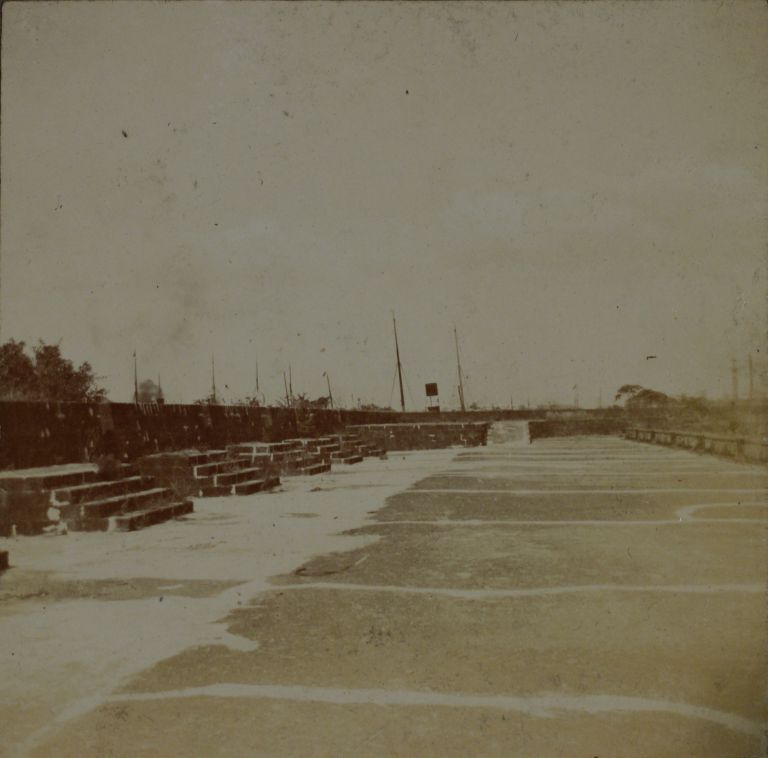 Subject: The top of Fort Santiago with steps leading up to cannon emplacements. The cannons have been removed, as they were obsolete by the time of the 1898 Battle of Manila Bay. See OFI-00