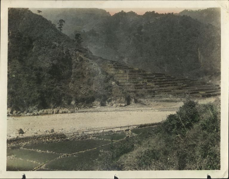 Subject: A gravel road passes though terraced rice paddies in mountainous country in Northern Luzon.
