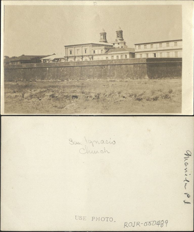 Subject: Intramuros walls with San Ignacio church seen beyond, Manila.