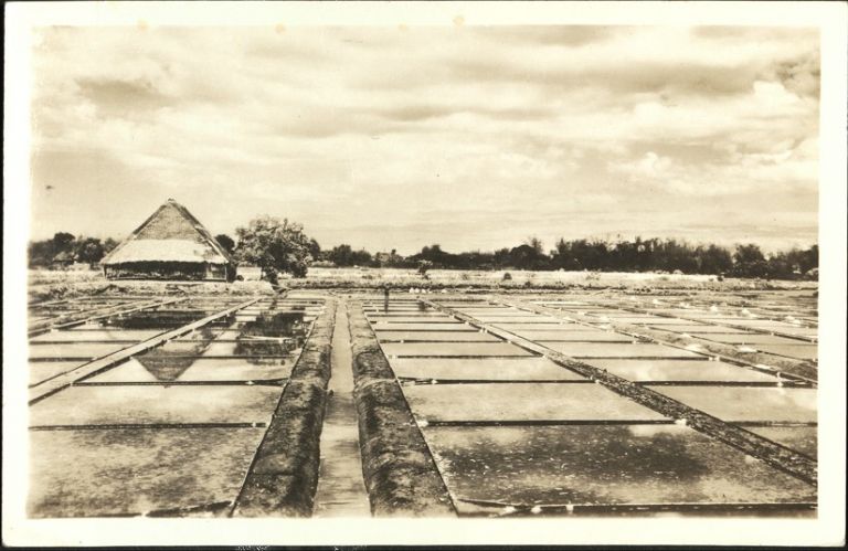 Subject: Salt evaporating ponds in Para�aque with nipa hut in background.