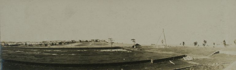 Subject: View of Luneta Park looking from Intramuros south to Ermita. The gazebos in Luneta can be seen, center.