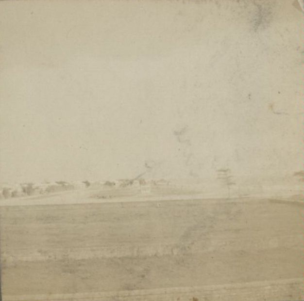 Subject: Very faded view of Luneta Park looking from Intramuros south to Ermita. The gazebos in Luneta can be seen, center.