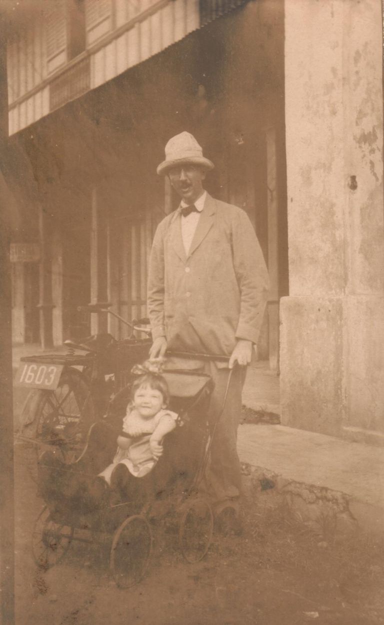 Subject: A man pushes a baby stroller next to a motorcycle. The capiz-shell windows indicate this was taken in the Philippines. No caption and no explanation how this relates to the Thurlow/Fournier f