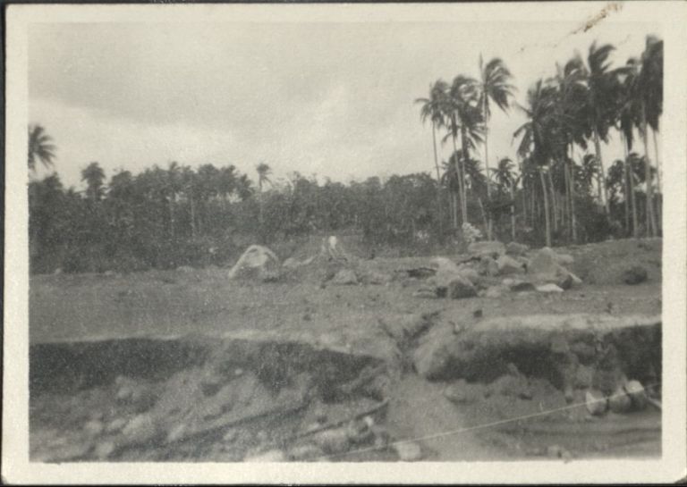 [Untitled - Man inspects railroad tracks covered with dirt and rocks after a flood or landslide].