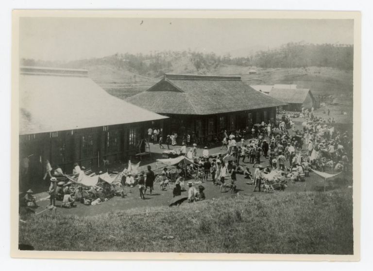 Market scene likely in Baguio. Due to the many dogs present this may be related to the dog market (see OFI-000309-312).