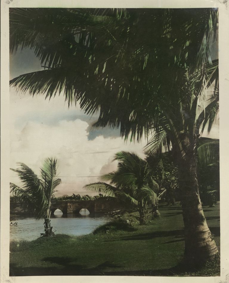[Untitled - Park, river, and old stone bridge - Legaspi City?].