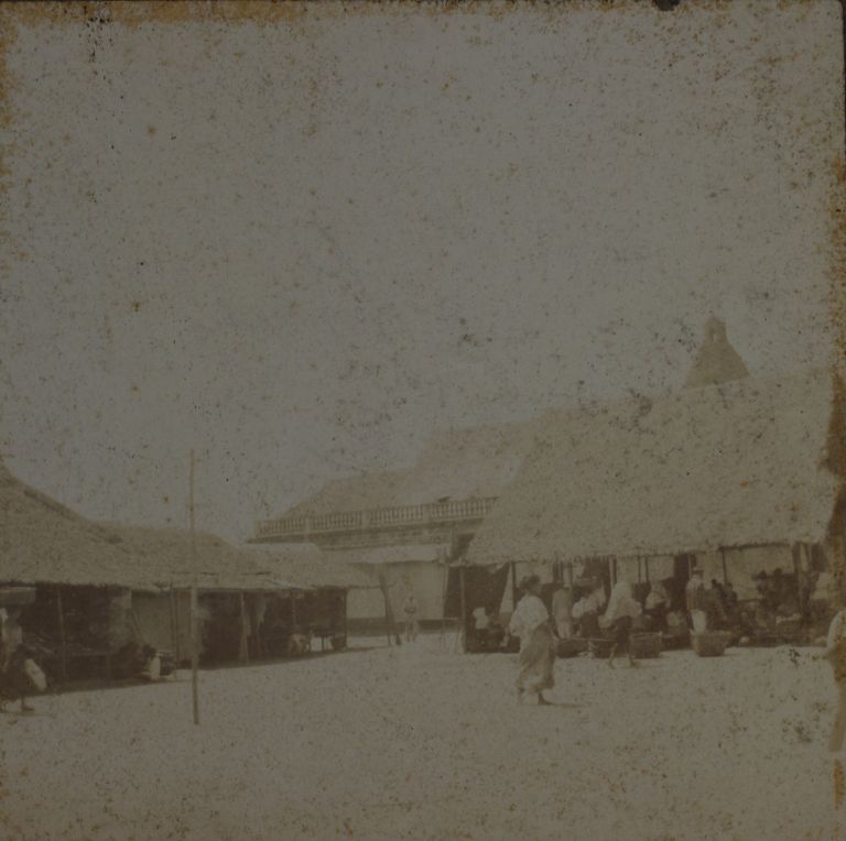 [Untitled - Philippine market and unidentified church bell tower - Santa Cruz or Binondo?].