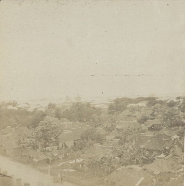 Subject: If this photo were not so faded we could identify the location from the church in the hazy distance. The bell tower has a highly pitched steeple similar to Santa Ana in Manila (see