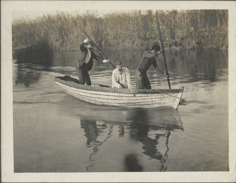 [Untitled - Poling a boat on a river].