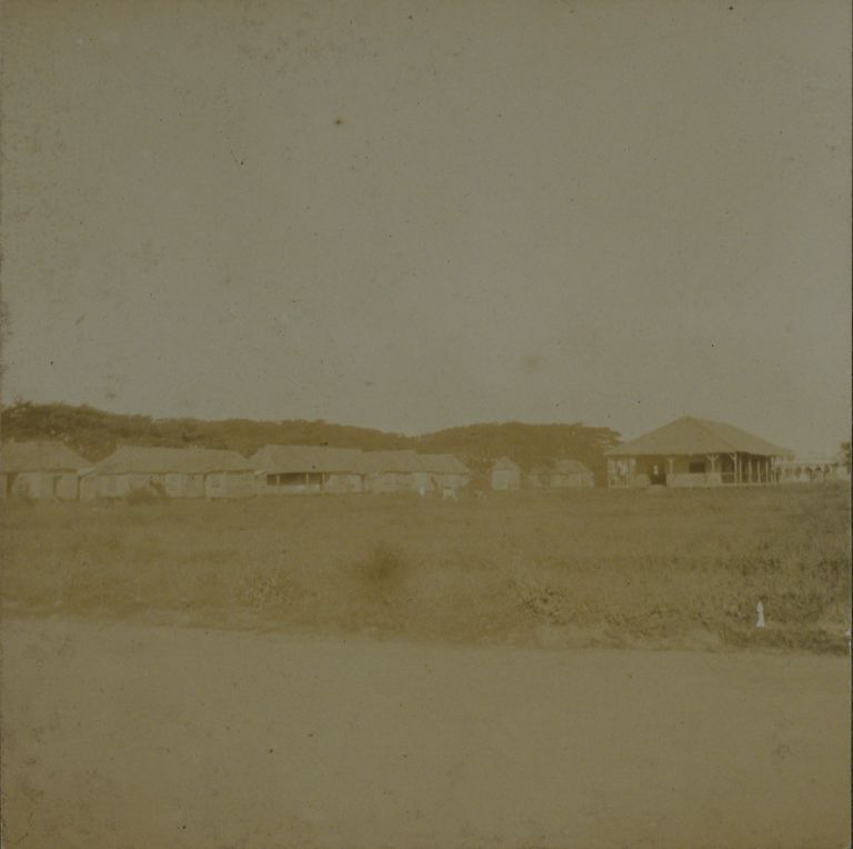 Subject: A series of buildings that has the look of a U.S. military camp during the Philippine-American War.